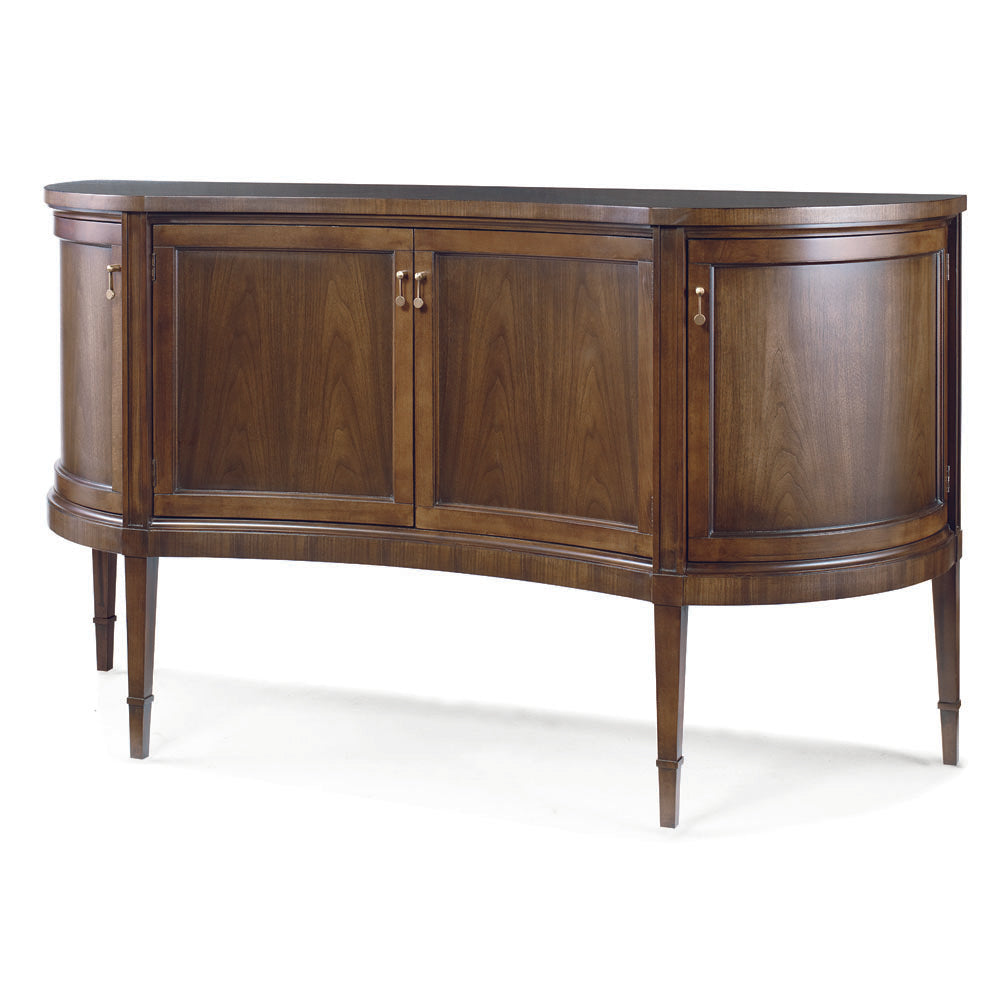 One adjustable shelf behind two center doors and one adjustable shelf behind each end door. Solid Brass hardware