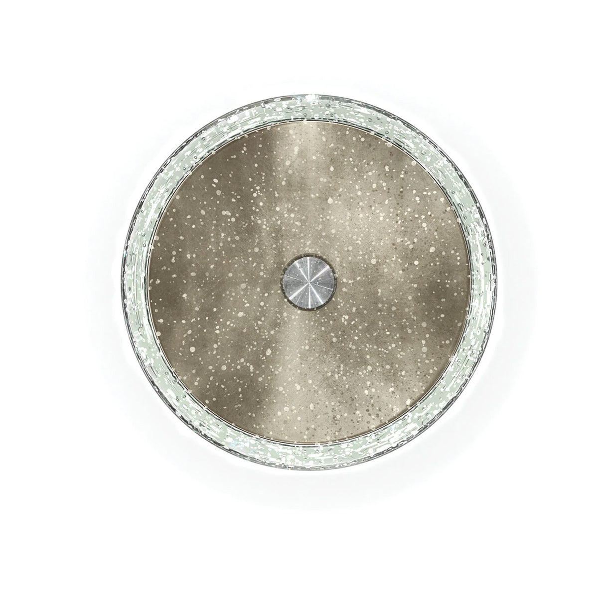 Bold and bubbly, this artful accent table delights the eye with its alluring design. A substantial, bevel-cut top in cast bubble glass adds sparkle to a reimagined, hourglass-shaped base, finished in a mix of shimmering silver leaf finishes. Captivating in form and function, it layers in light and a cool metallic, while offering the perfect place for a chilled cocktail and your favorite spy novel.