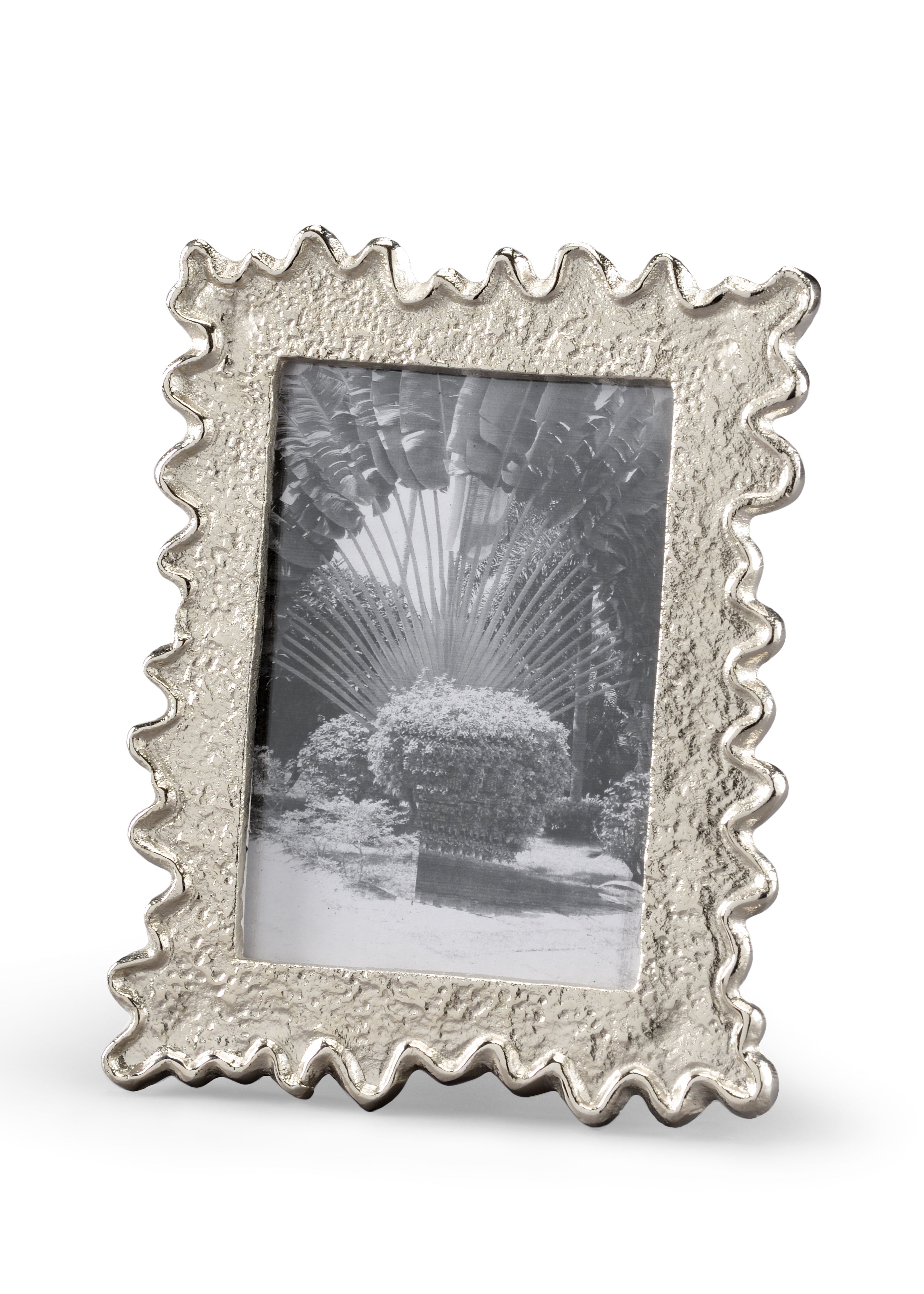 Show off your favorite memory in this whimsical accent that complements any decor. Crafted of aluminum with a hammered silver finish, Squiggle Photo Frame holds a 5x7 photograph. It has a clear protective glass covering and an easel for horizontal or vertical viewing. Display it on any table, desk or bookcase in your home or office.