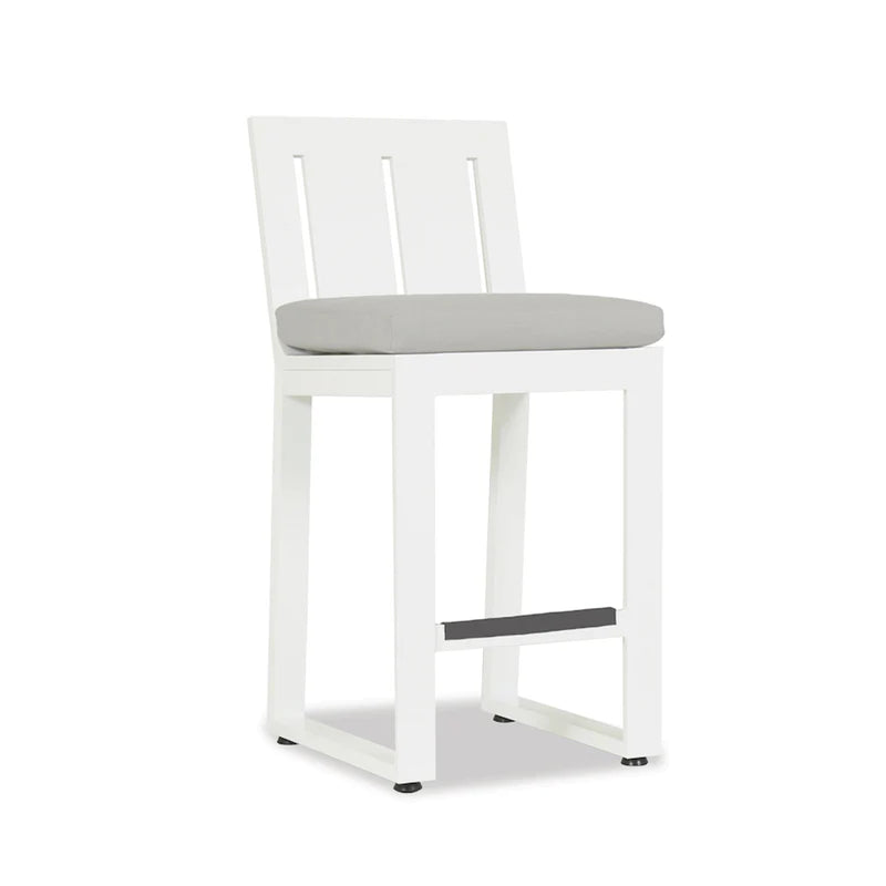 The Newport Counter Stool blends modern and industrial sensibly into one striking design, featuring a vertical slat back and armless linear frame, crafted in powder coated aluminum with a Satin White finish.