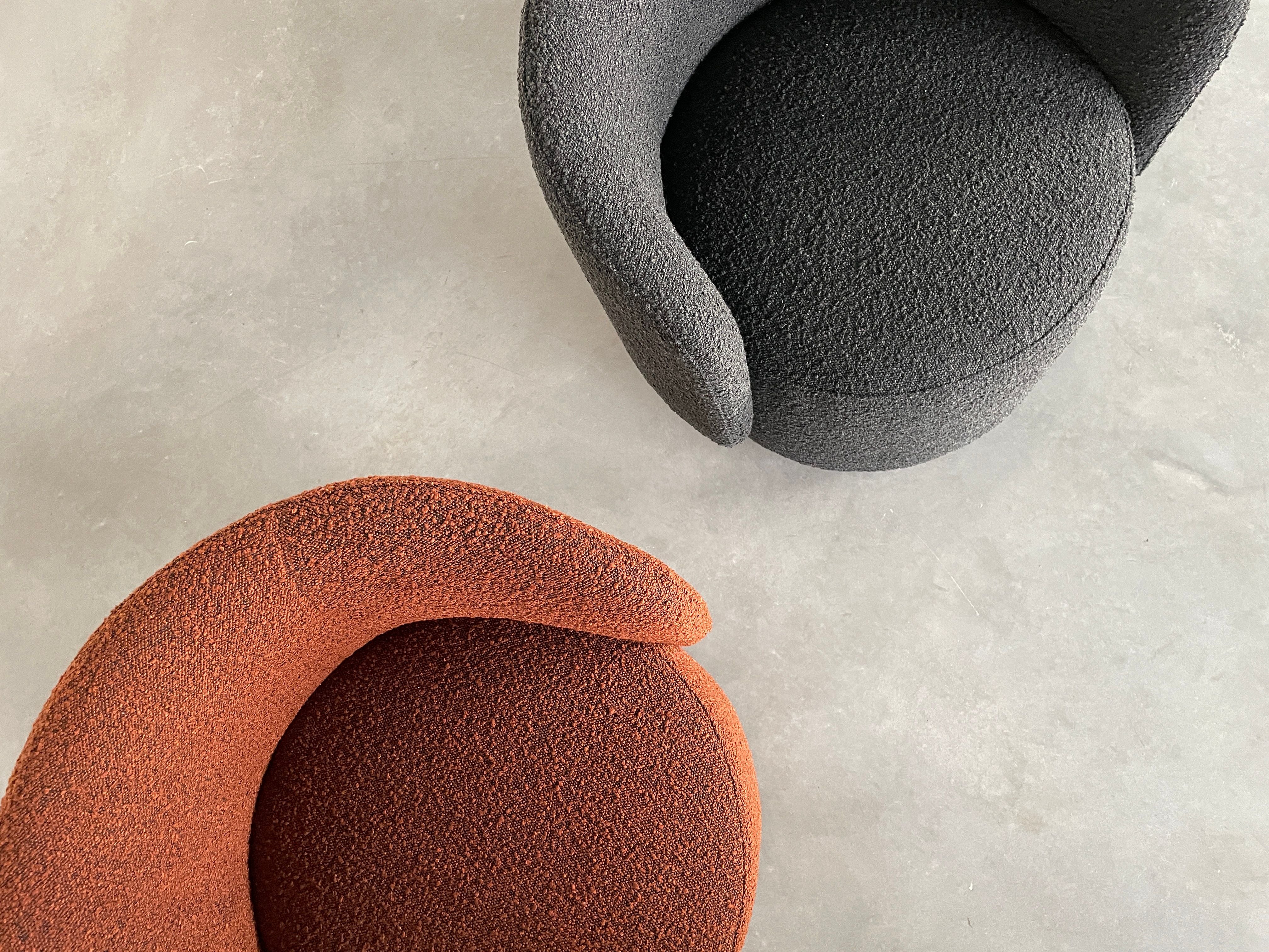 BIARRITZ Swivel Lounge Chair Licorice Boucle Fabric | Mobital - LCH-BIAR-LICO-BOUC