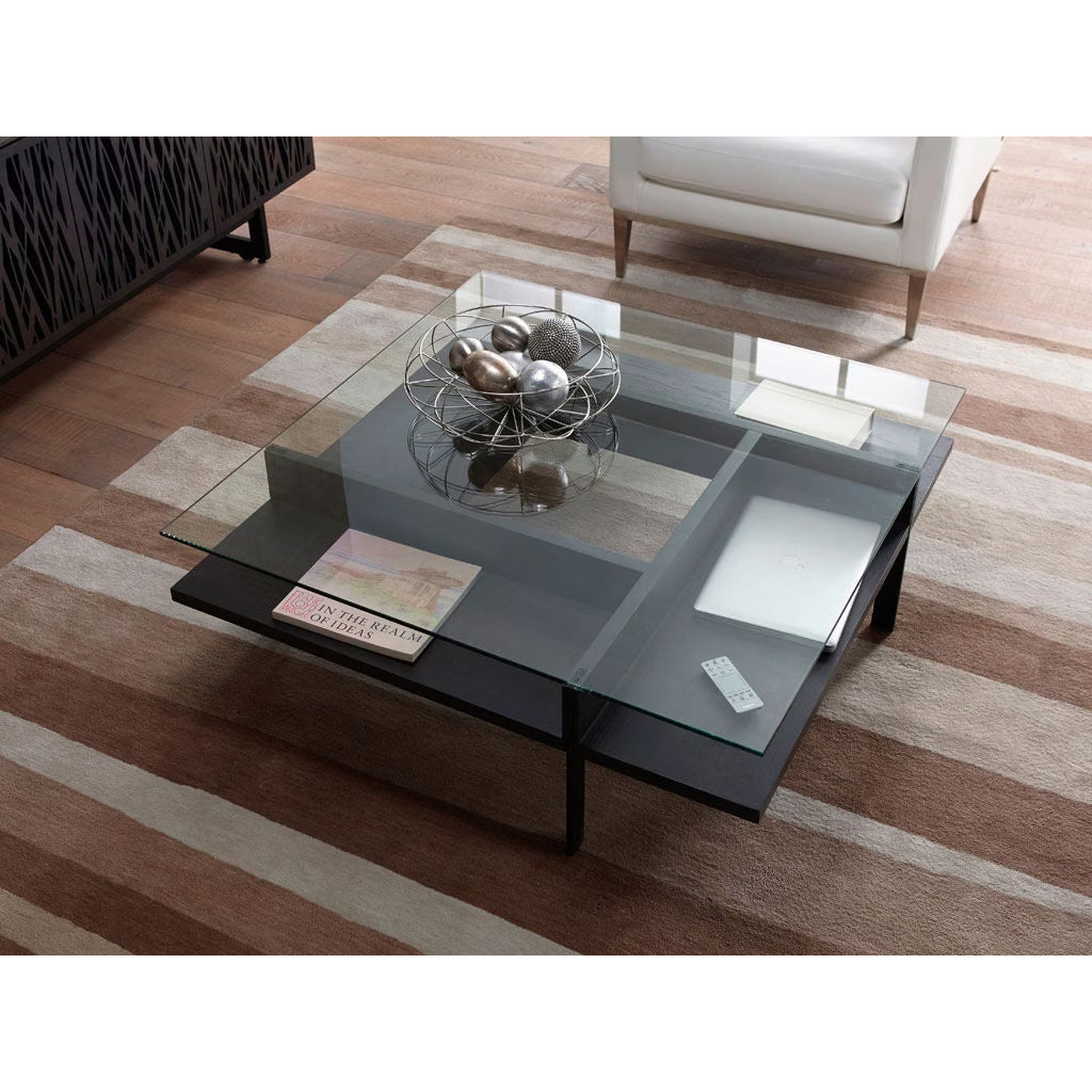 Architectural in feel, this end table complements and pairs perfectly with the rest of the Terrace collection. The Terrace 1156 End Table's clean and meticulous design are on full display, while the tempered glass surface provides a clear view of the lower shelf. Pairs perfectly with the Terrace 1153 Console Table and the Terrace 1150 & 1152 Coffee Tables.