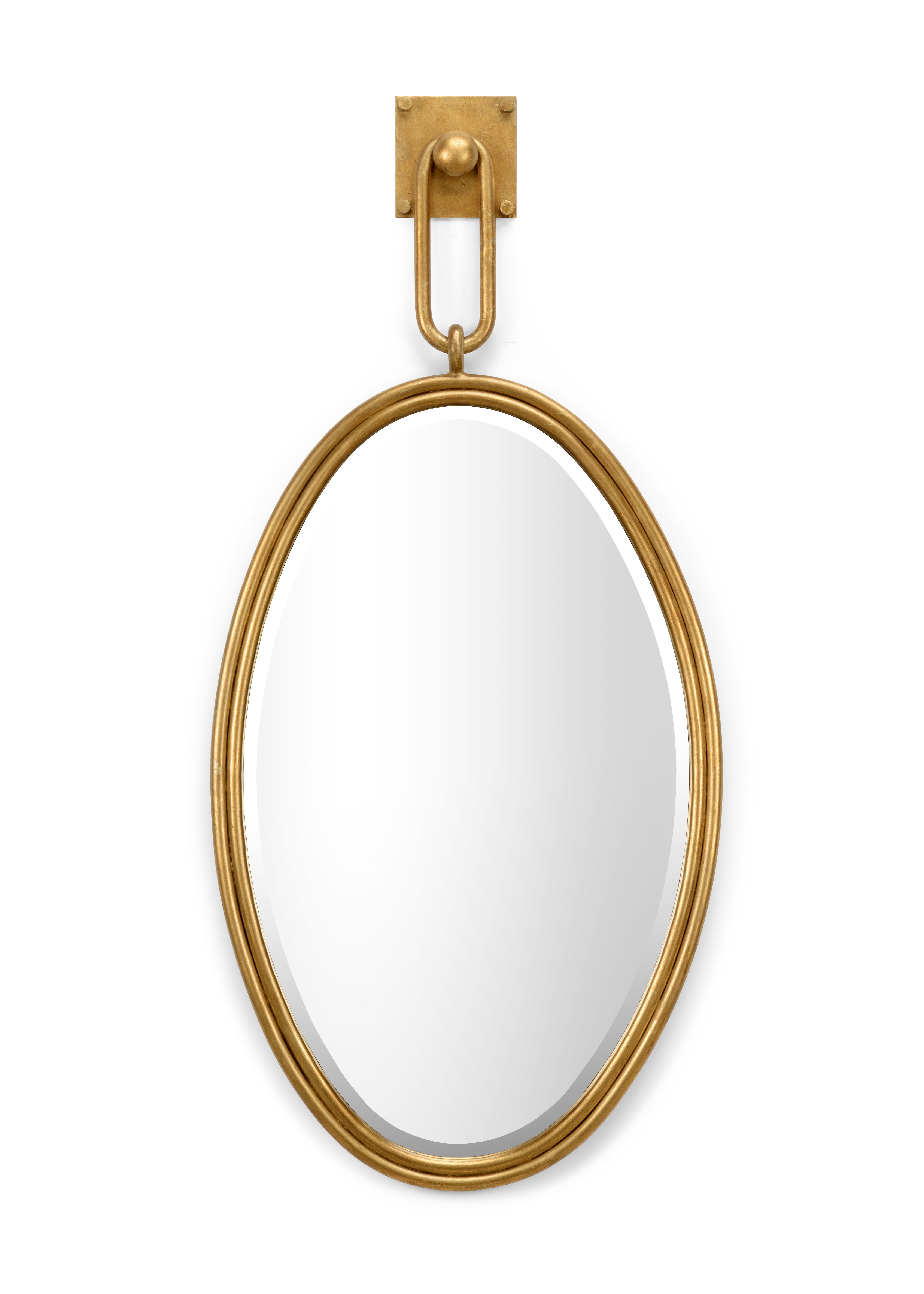 Open up your space while adding style with Tobago Mirror. This large oval mirror features an antique gold leaf finish on an iron frame. The modern design is suspended from a square wall hook for added dimension. Worthy of its own space, hang this beveled mirror on a wall in your home to reflect your decorative aesthetic. (Available in other sizes and finishes)