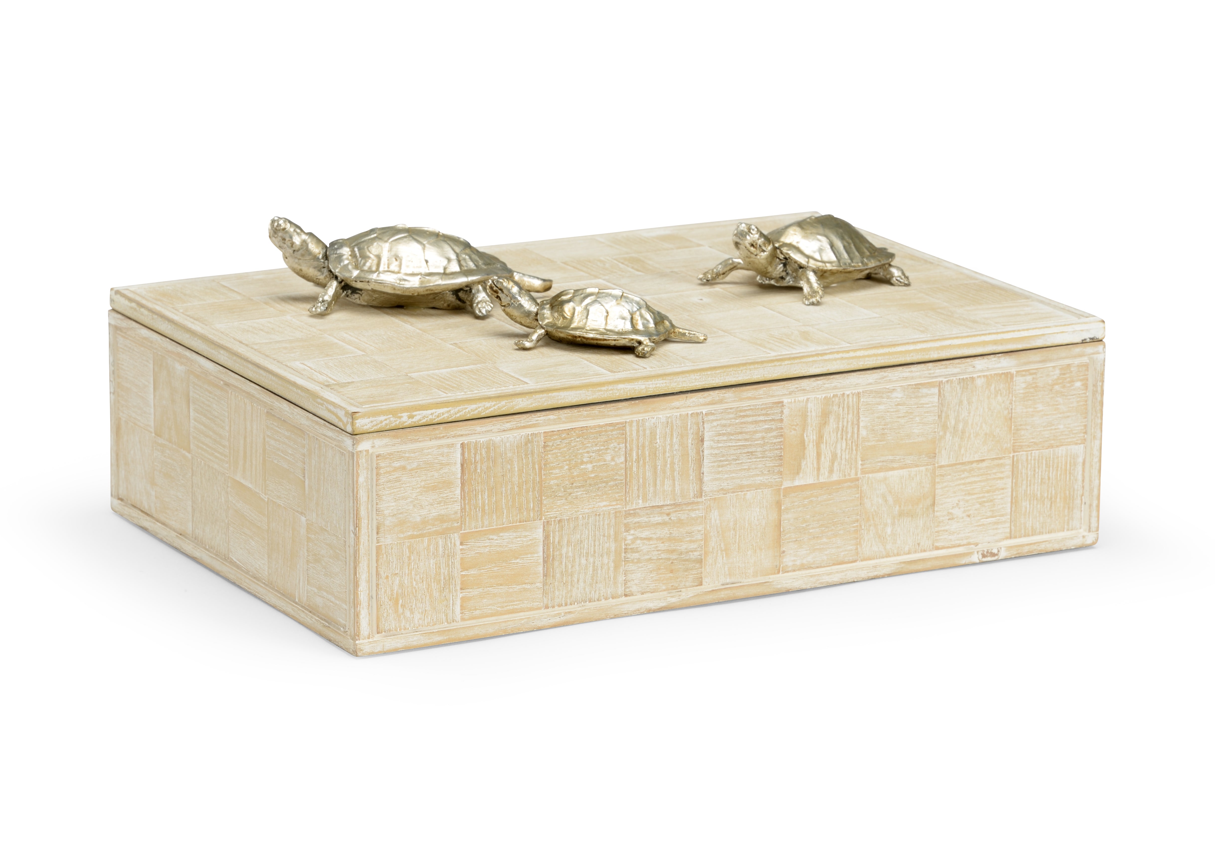 Conceal personal items around your home with the Tortoise Family Box. Featuring a family of charming silver plated turtles crafted of composite on a whitewashed wooden box, this box is ideal for any waterfront home.