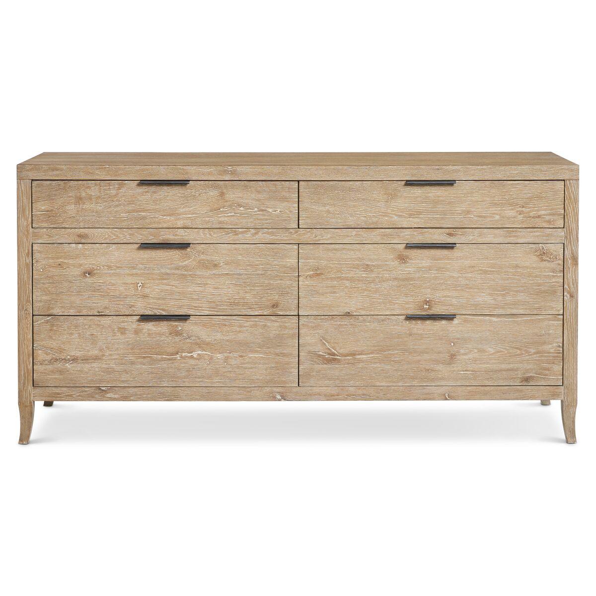 Wirebrushed Oak Dresser In Aurum Finish With Six Pull-To-Open, Soft-Close Drawers With Applied Texture Tab Pulls. Adjustable Glides.