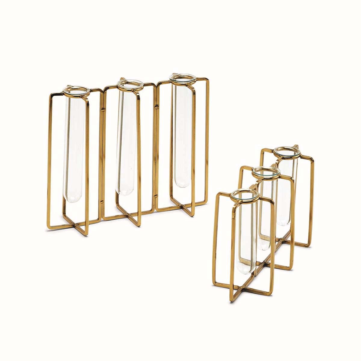 Geometric glass and gold vases are the perfect complement to a flower's organic shape and texture. The artful designs are a minimalist, eye-catching addition to your living or dining space.