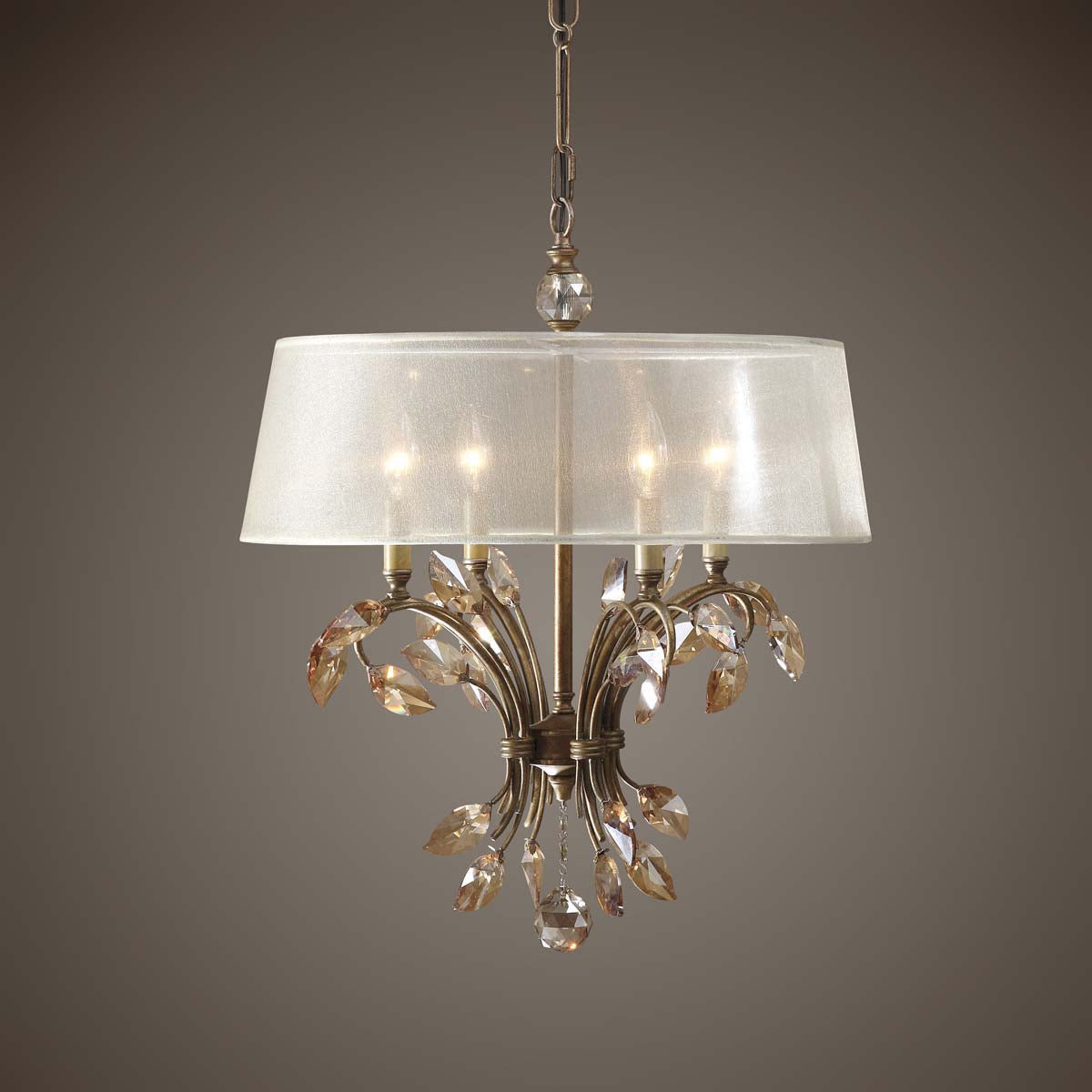 Uttermost's Light Fixtures Combine Premium Quality Materials With Unique High-style Design.With The Advanced Product Engineering And Packaging Reinforcement, Uttermost Maintains Some Of The Lowest Damage Rates In The Industry. Each Product Is Designed, Manufactured And Packaged With Shipping In Mind. Burnished Gold Metal With Golden Teak Crystal Leaves And A Silken Champagne Sheer Fabric Shade.