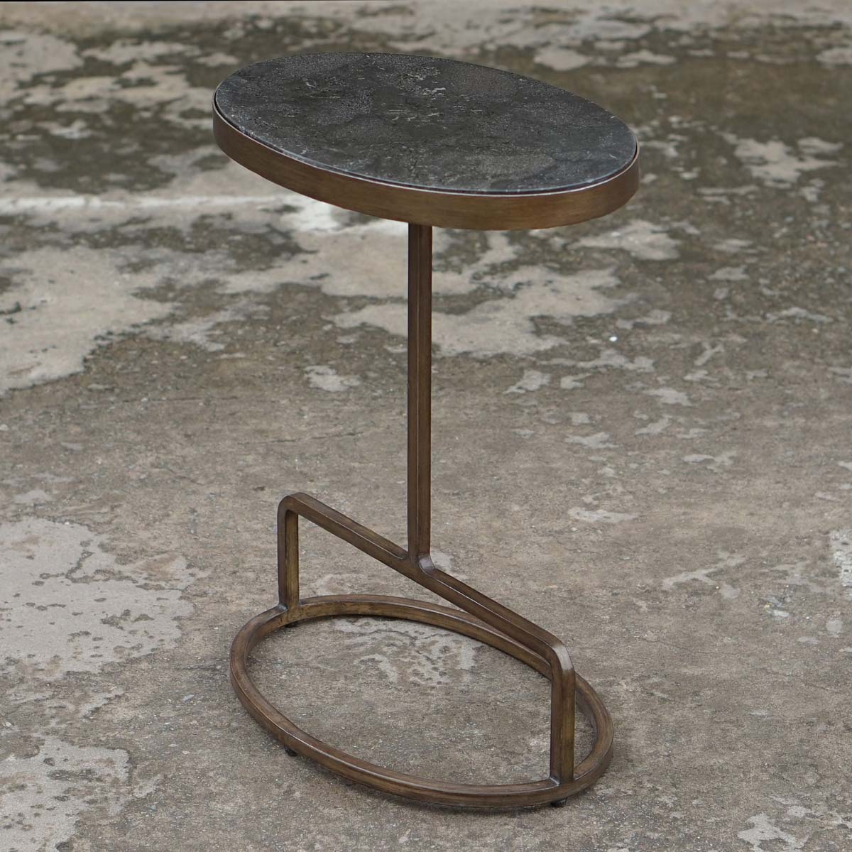 Uttermost's Accent Furniture Combines Premium Quality Materials With Unique High-style Design.With The Advanced Product Engineering And Packaging Reinforcement, Uttermost Maintains Some Of The Lowest Damage Rates In The Industry. Each Product Is Designed, Manufactured And Packaged With Shipping In Mind. Showcasing A Clean-lined Design, This Accent Table Features An Inset Oval-shaped Polished Bluestone Top With Natural Characteristics Of White Marbling And Veining Throughout, Supported With A Hand Forged Iron Base Finished In Heavily Antiqued Brushed Gold.