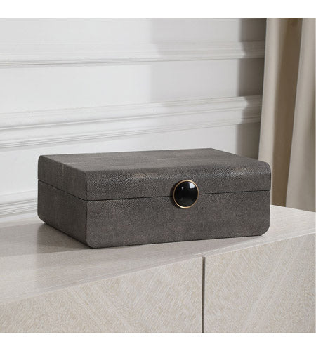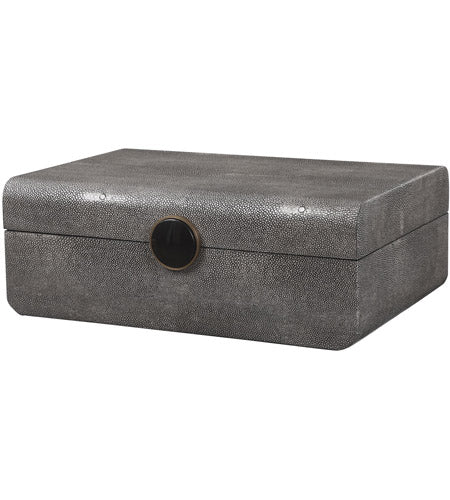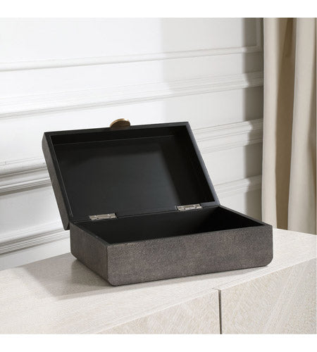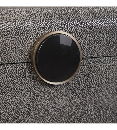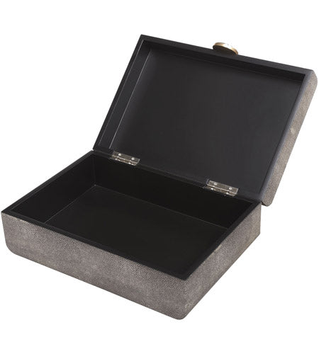 Inspired By The Art Deco Era, This Decorative Box Showcases A Faux White Shagreen Wrapped Exterior Accented By A Brushed Antique Brass And Black Enamel Closure. The Interior Is Finished In Matte Black.