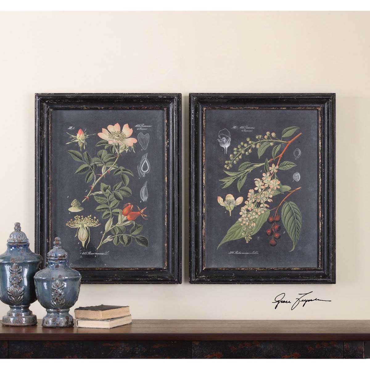 Uttermost Art Combines Premium Quality Materials With Unique High-style Design.With The Advanced Product Engineering And Packaging Reinforcement, Uttermost Maintains Some Of The Lowest Damage Rates In The Industry. Each Product Is Designed, Manufactured And Packaged With Shipping In Mind. Transitional In Style, These Colorful, Botanical Prints Evoke Traditional Scientific Texts. Shades Of Peach, Sage Green, And Red Pop Against The Aged Black Background. Distressed Wooden Frames With A Black Finish, Gray And Taupe Accents, And A Heavy Taupe Glaze Surround Each Piece Of Art. The Inner Lips Have A Golden-bronze Leaf Base With Heavy Black, Brown, Taupe, And Gray Distressed Details. Each Print Is Placed Under Protective Glass.