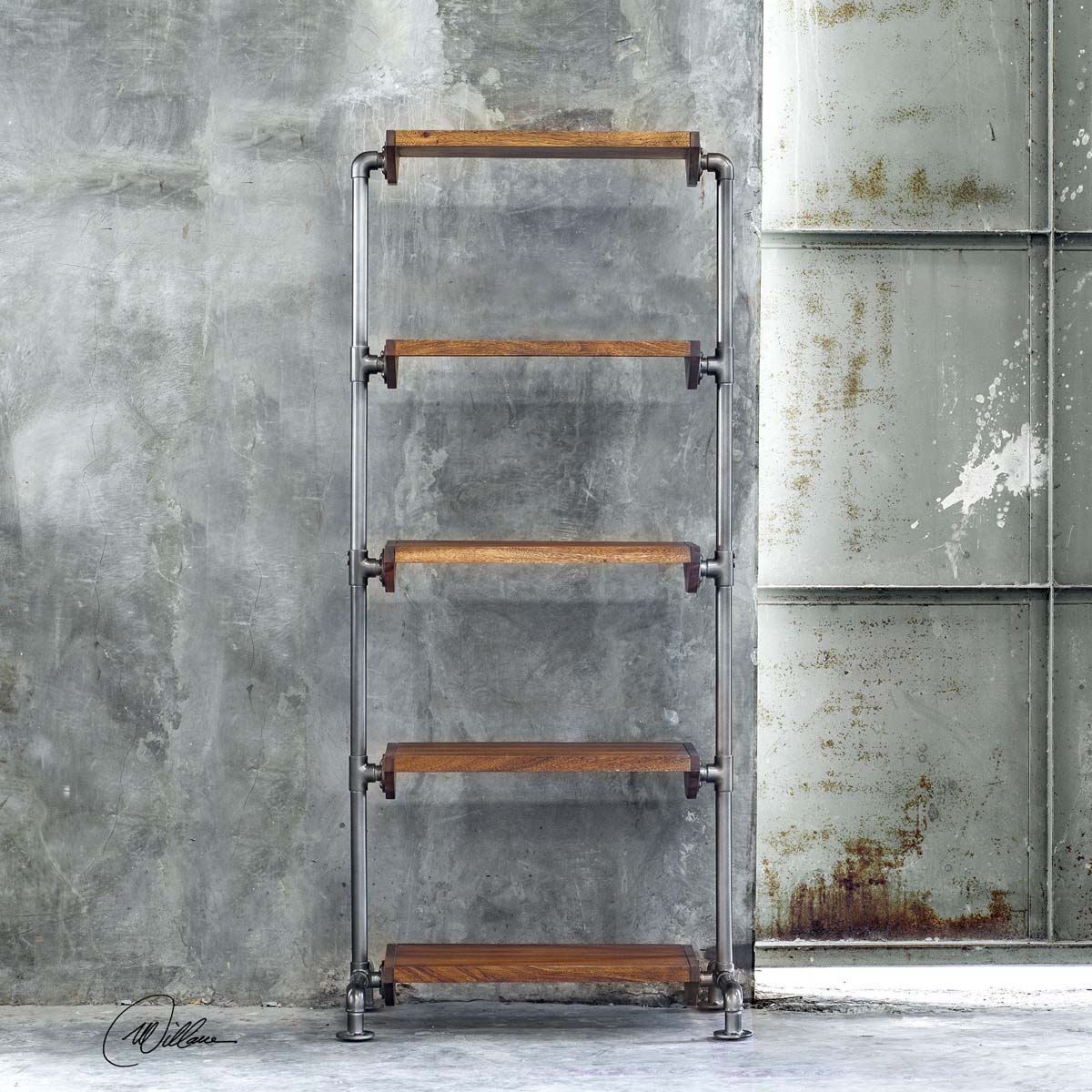 Uttermost's Accent Furniture Combines Premium Quality Materials With Unique High-style Design.With The Advanced Product Engineering And Packaging Reinforcement, Uttermost Maintains Some Of The Lowest Damage Rates In The Industry. Each Product Is Designed, Manufactured And Packaged With Shipping In Mind. Featuring Industrial Iron Pipe Framework In Aged Gunmetal, With Shelves In Acacia Wood Wrapped In Okoume Veneer And Finished In A Light Walnut Stain.