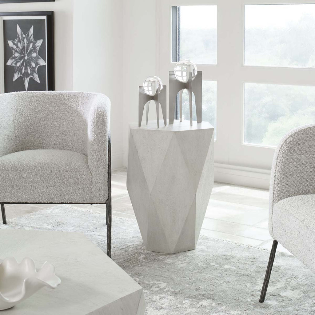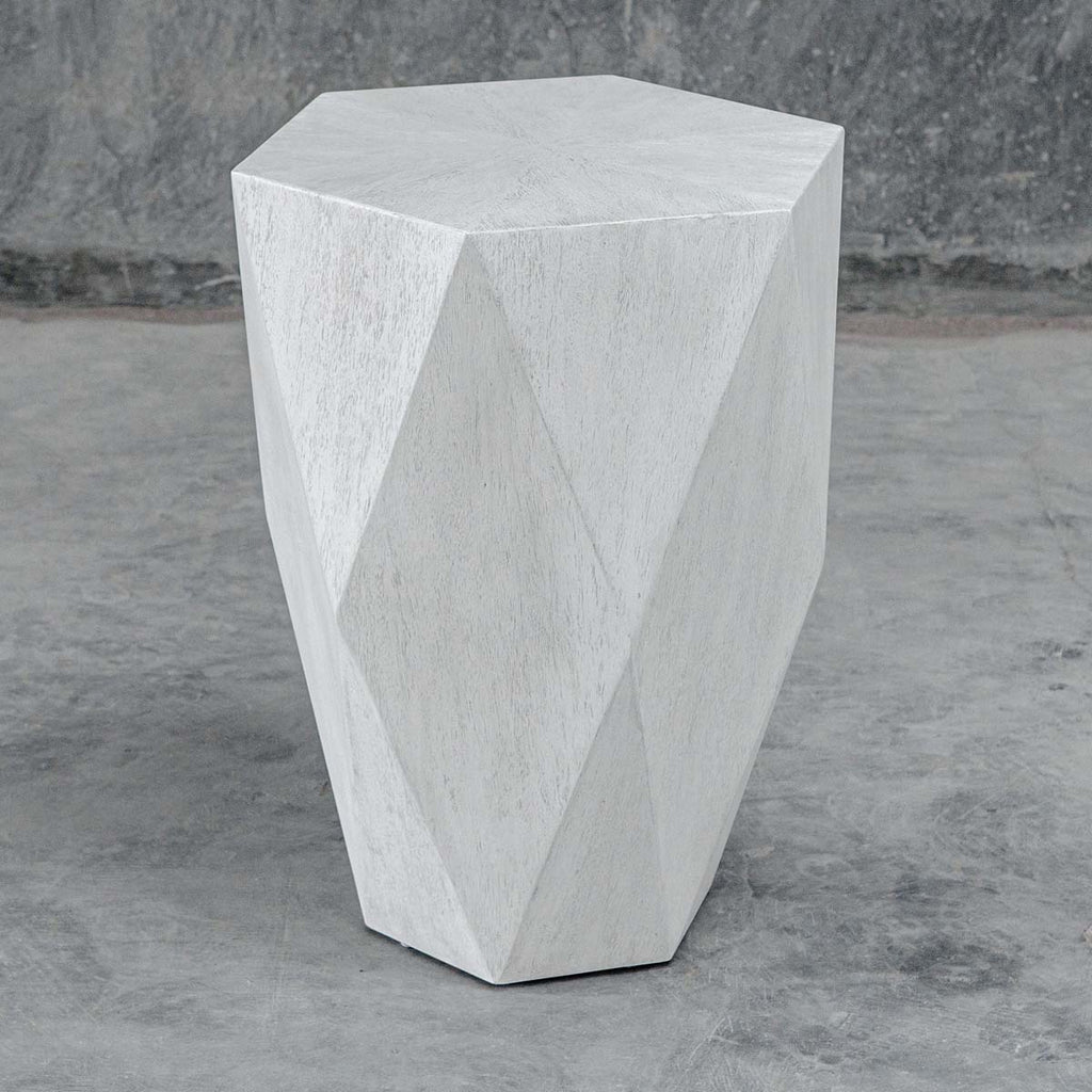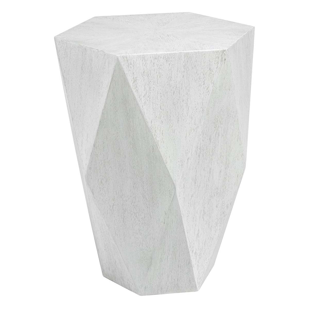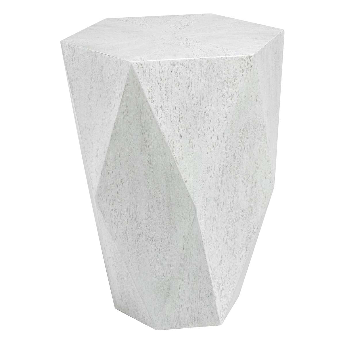 This Unique Geometric Side Table Features A Sunburst Top In Mango Veneer In A Fresh White Ceruse Finish.