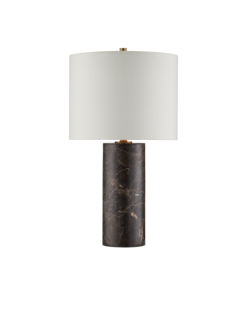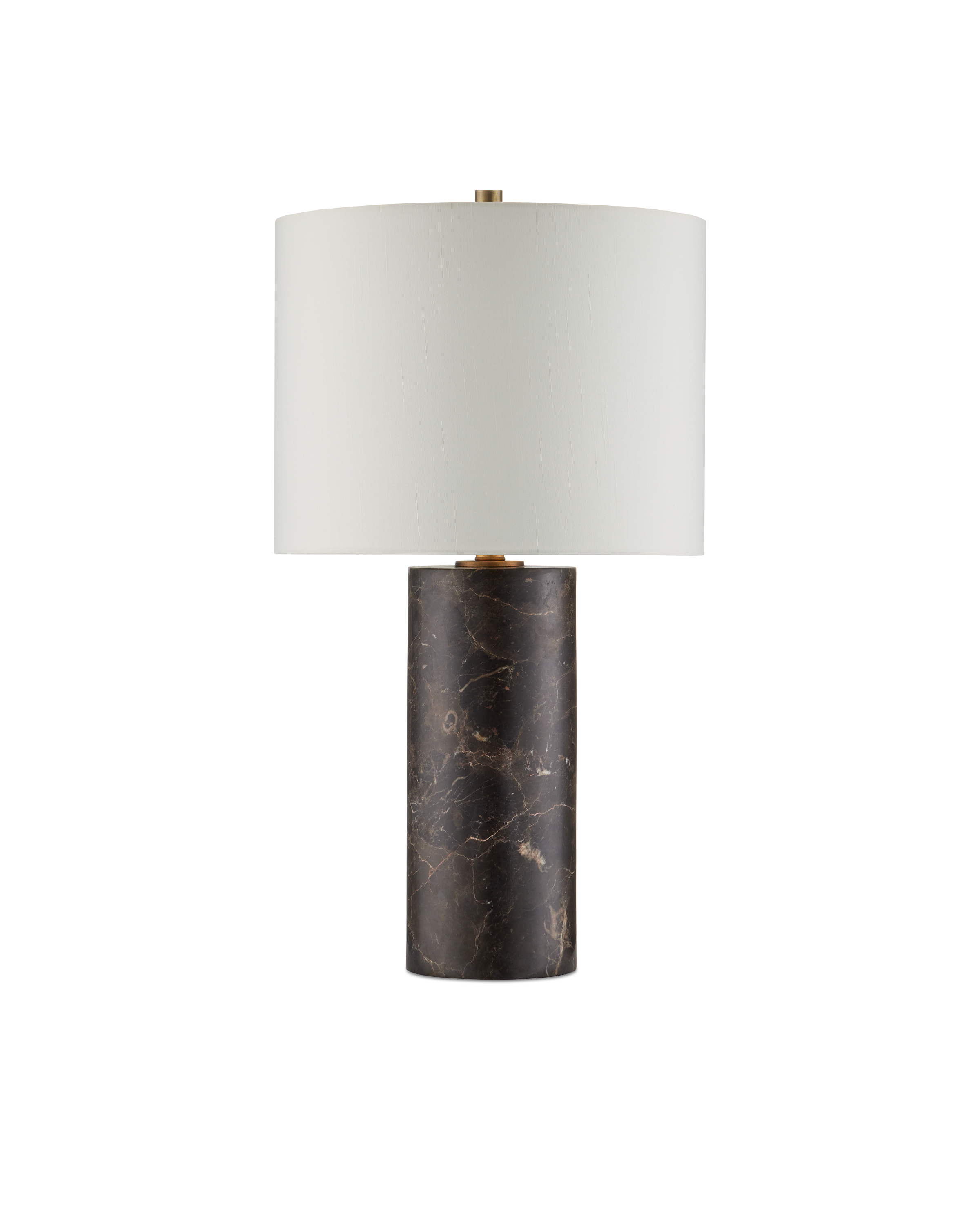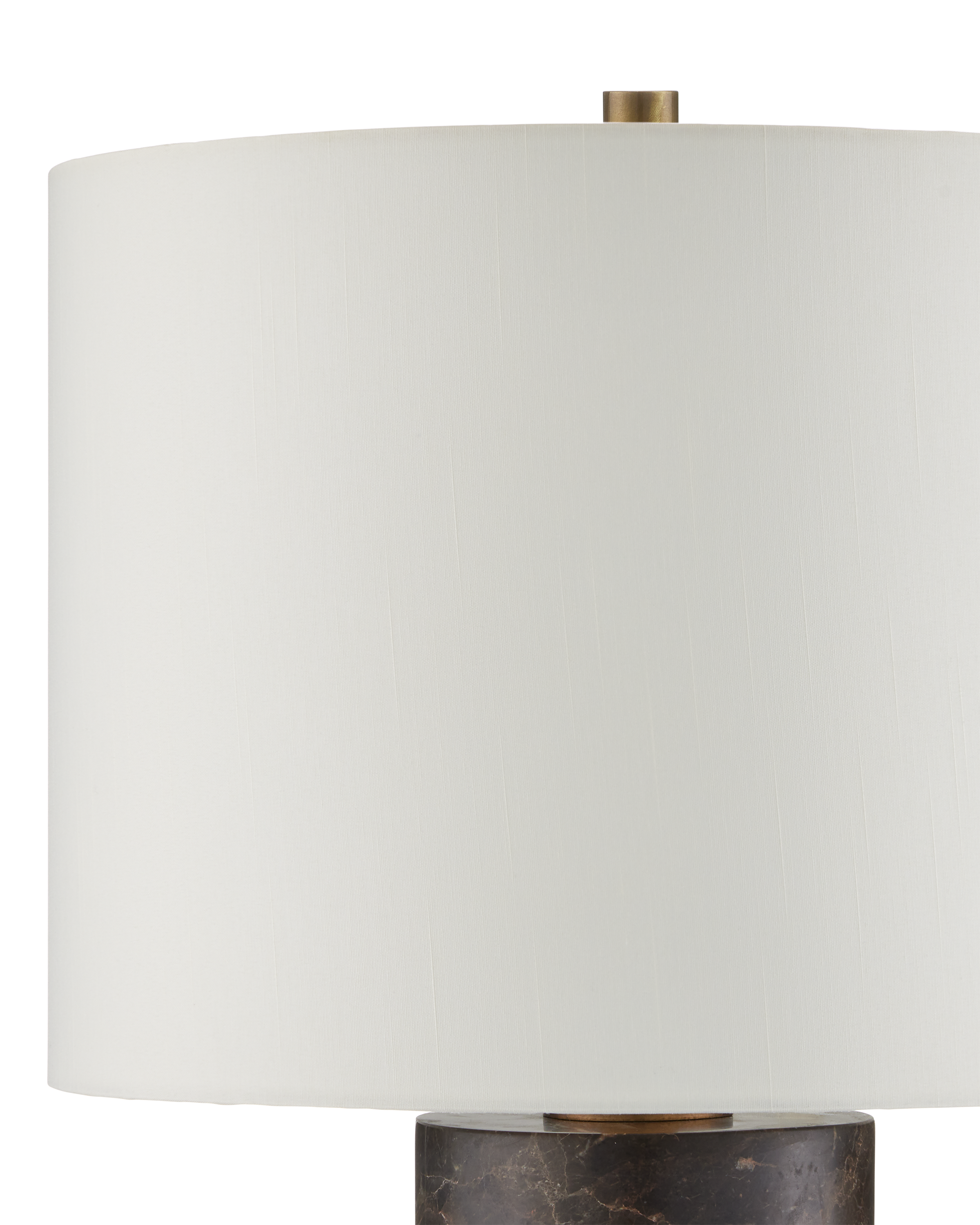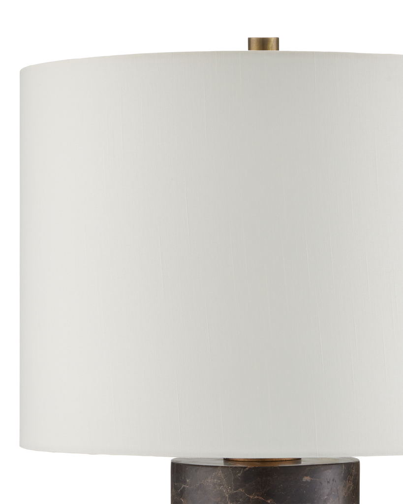 A tall column of swirling marble makes our Vespera Brown Table Lamp a clean-lined luminary with loads of personality. The beige and tan veining makes each of these coffee brown table lamps unique. The metal hardware in an antique brass finish draws out the darker tones in the lamp’s body, while the off-white shantung shade echoes the pale tones in the lustrous marble.