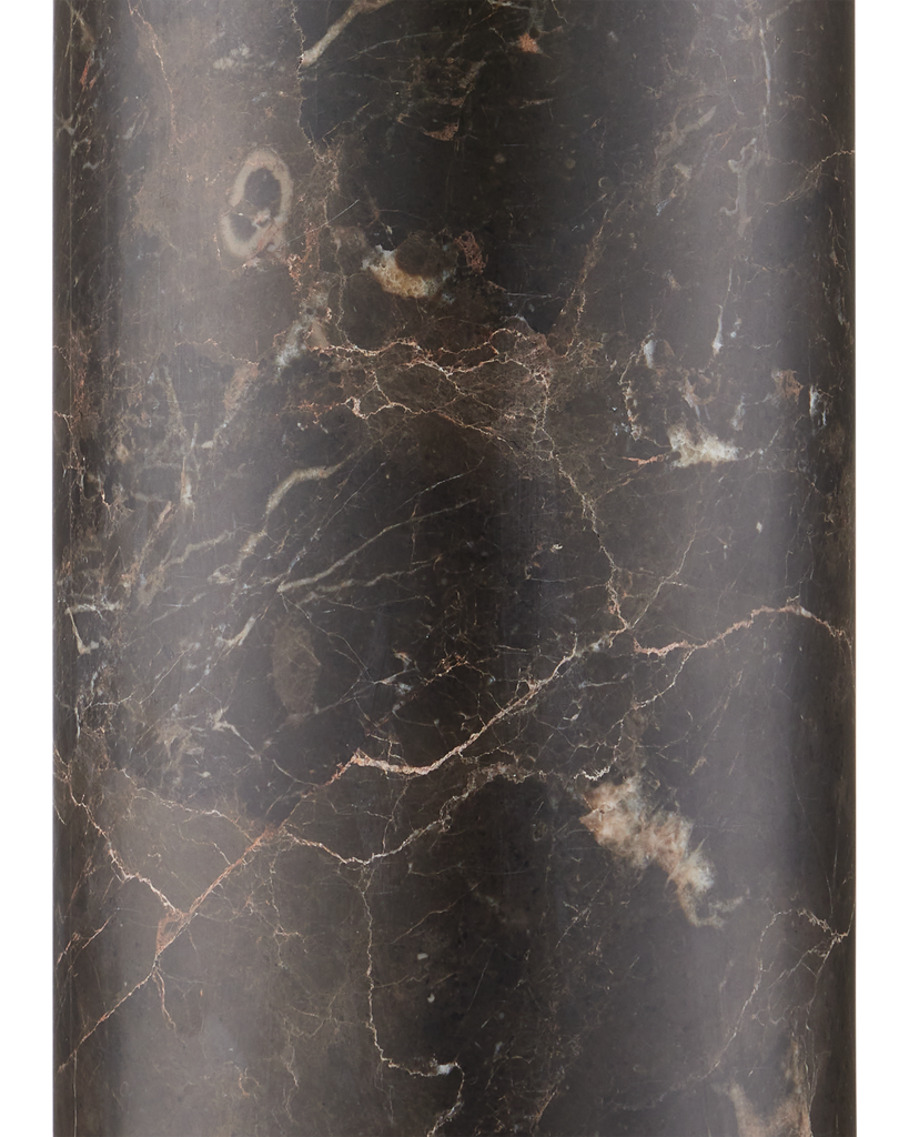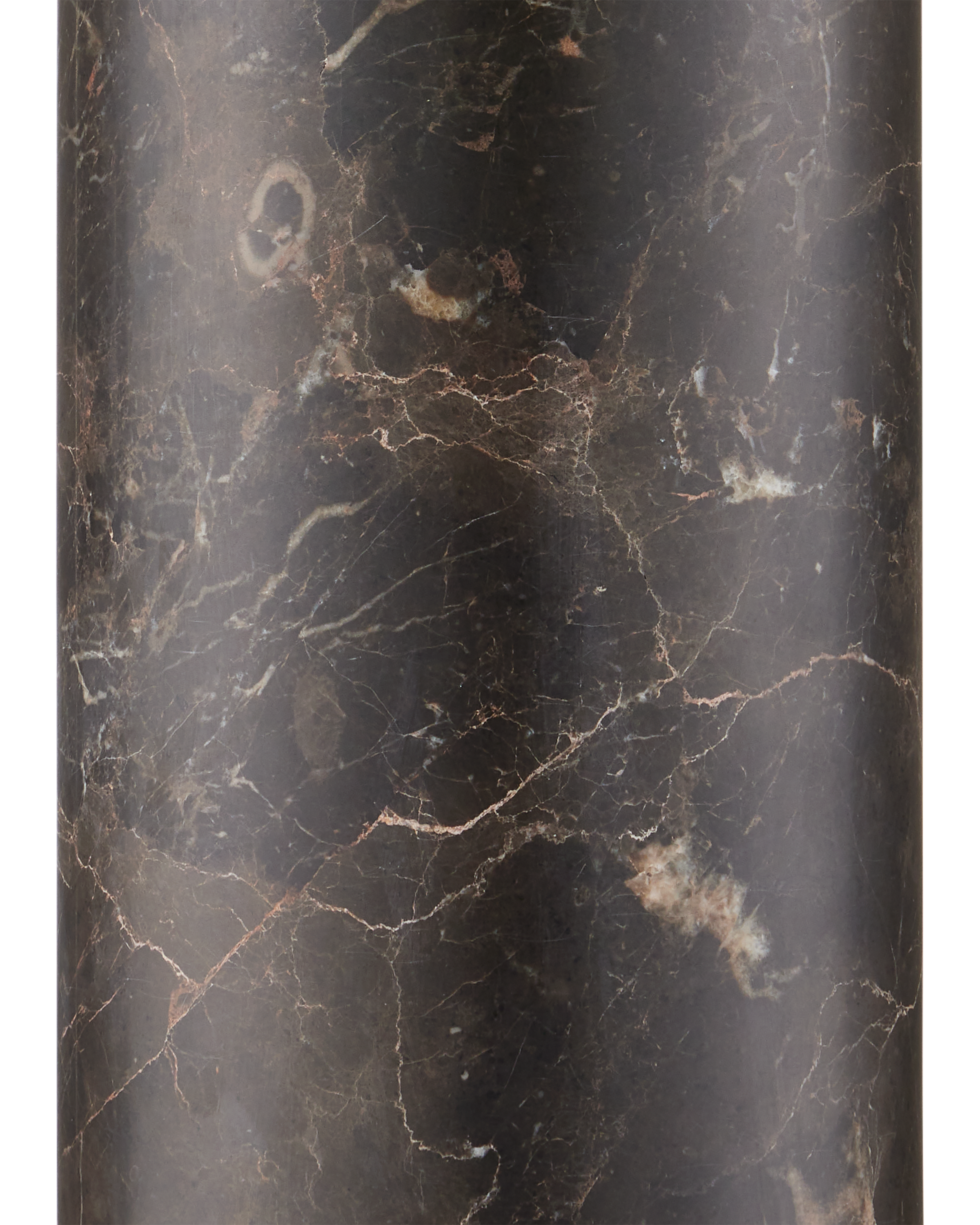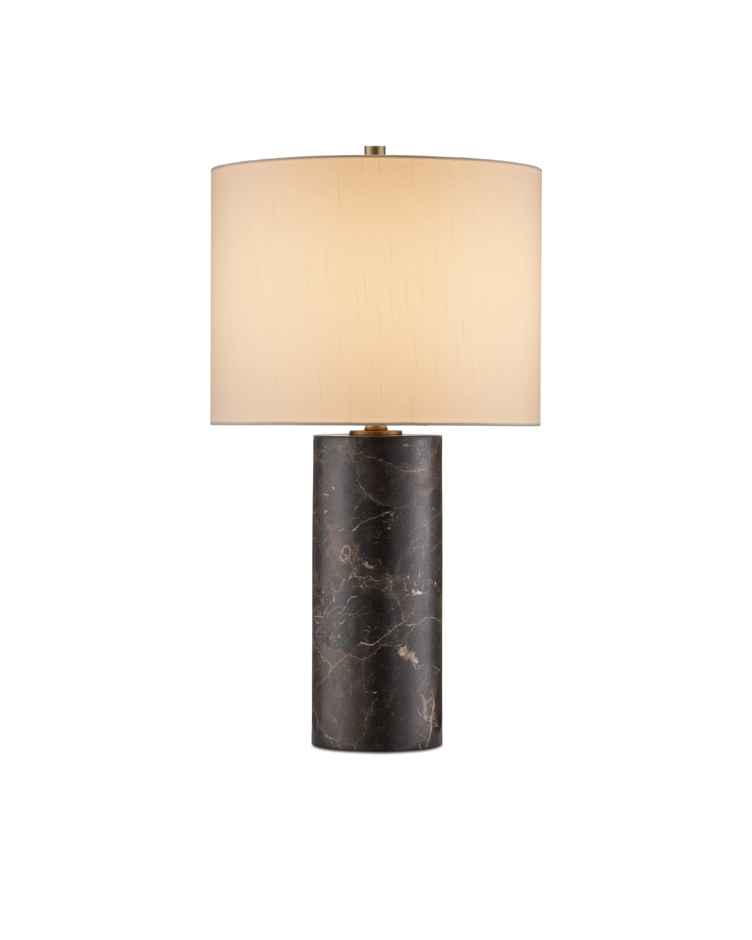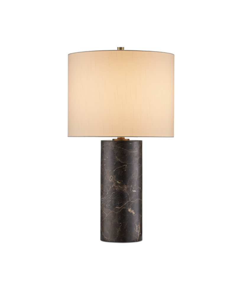 A tall column of swirling marble makes our Vespera Brown Table Lamp a clean-lined luminary with loads of personality. The beige and tan veining makes each of these coffee brown table lamps unique. The metal hardware in an antique brass finish draws out the darker tones in the lamp’s body, while the off-white shantung shade echoes the pale tones in the lustrous marble.