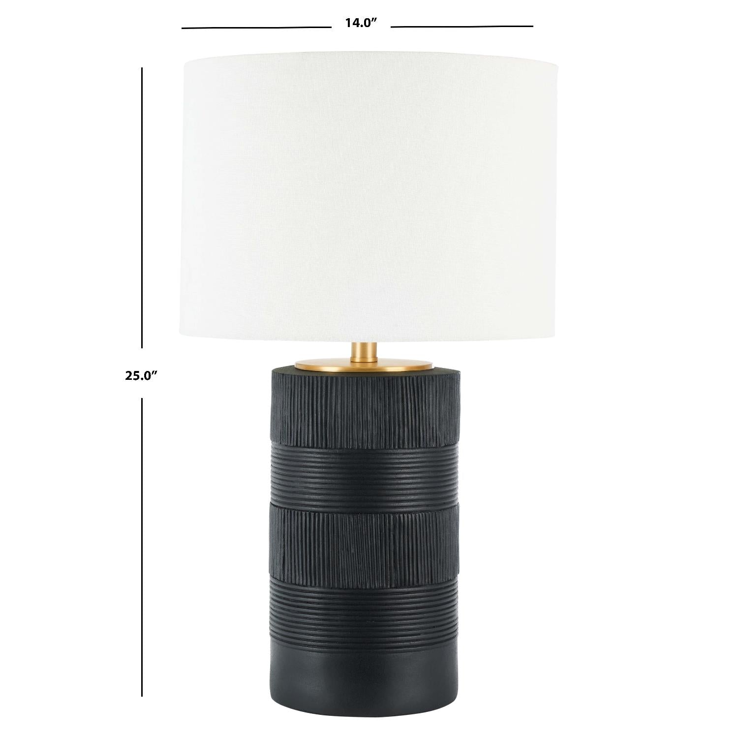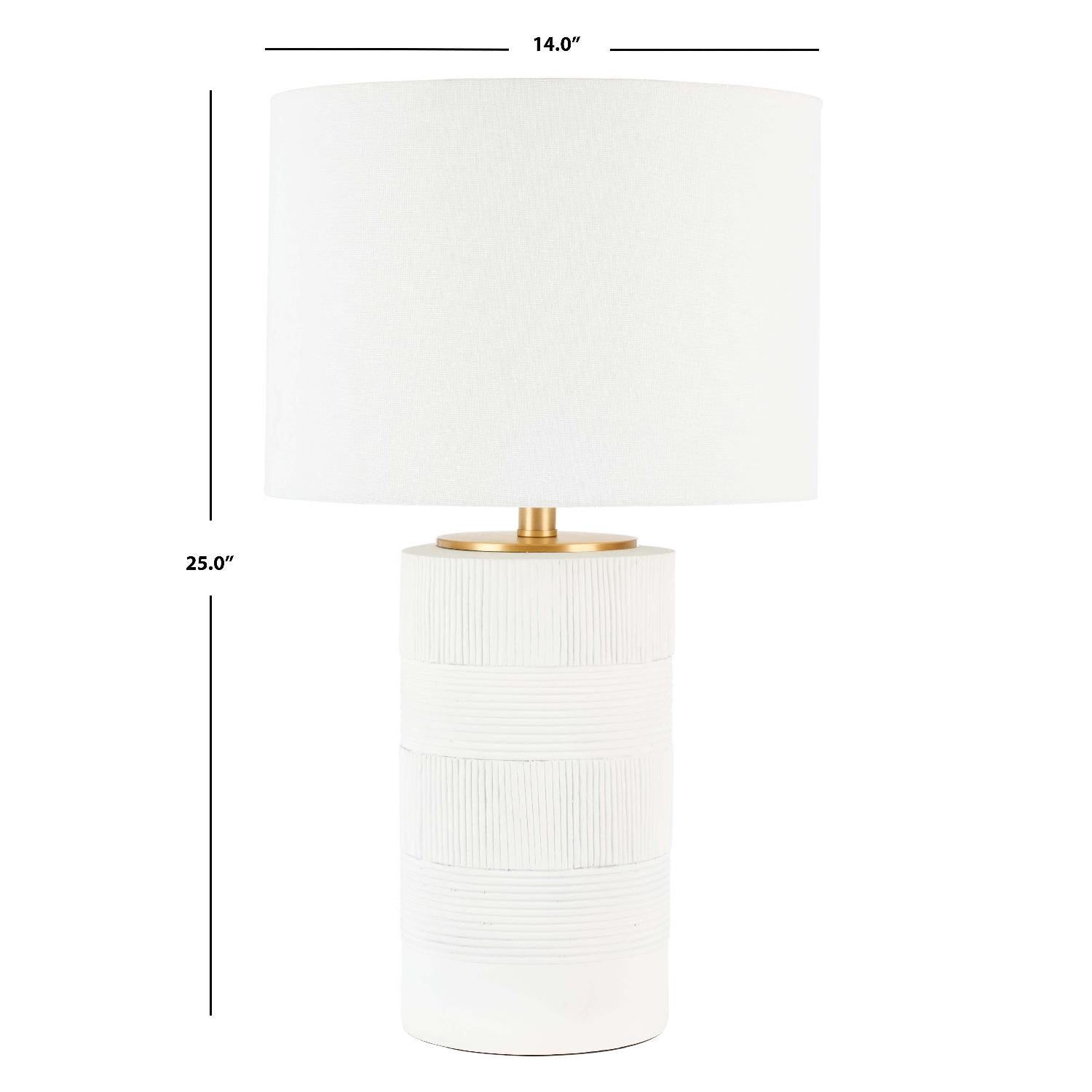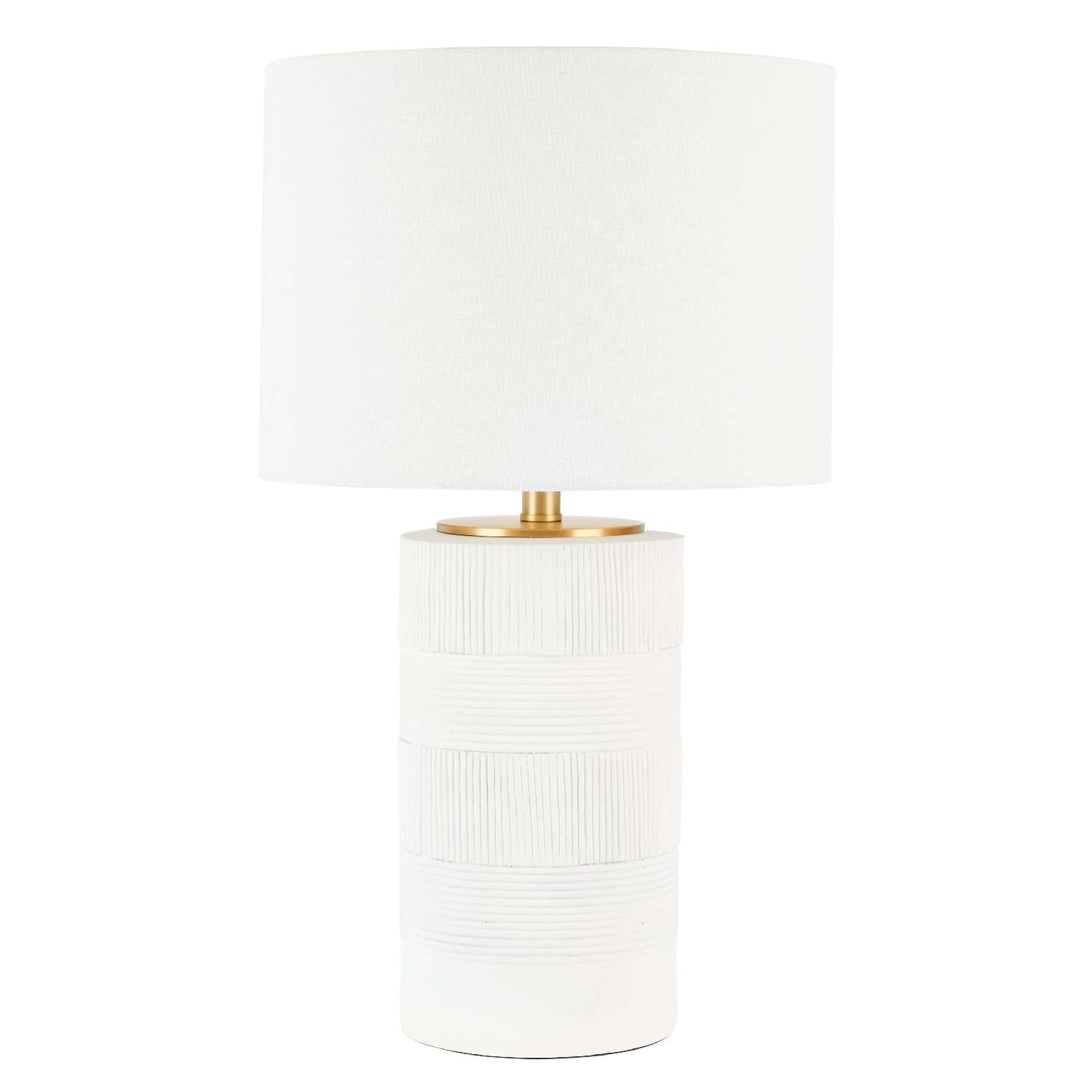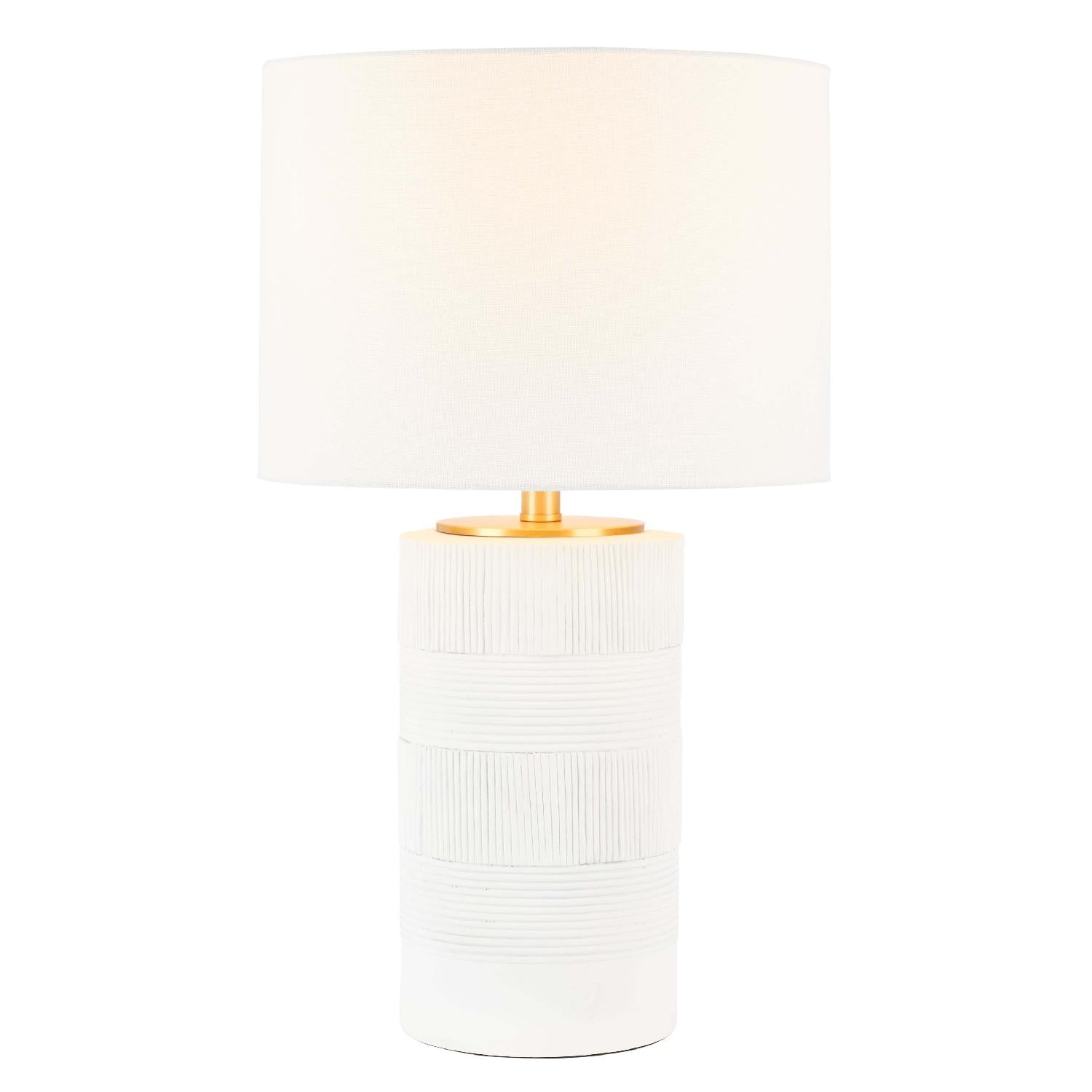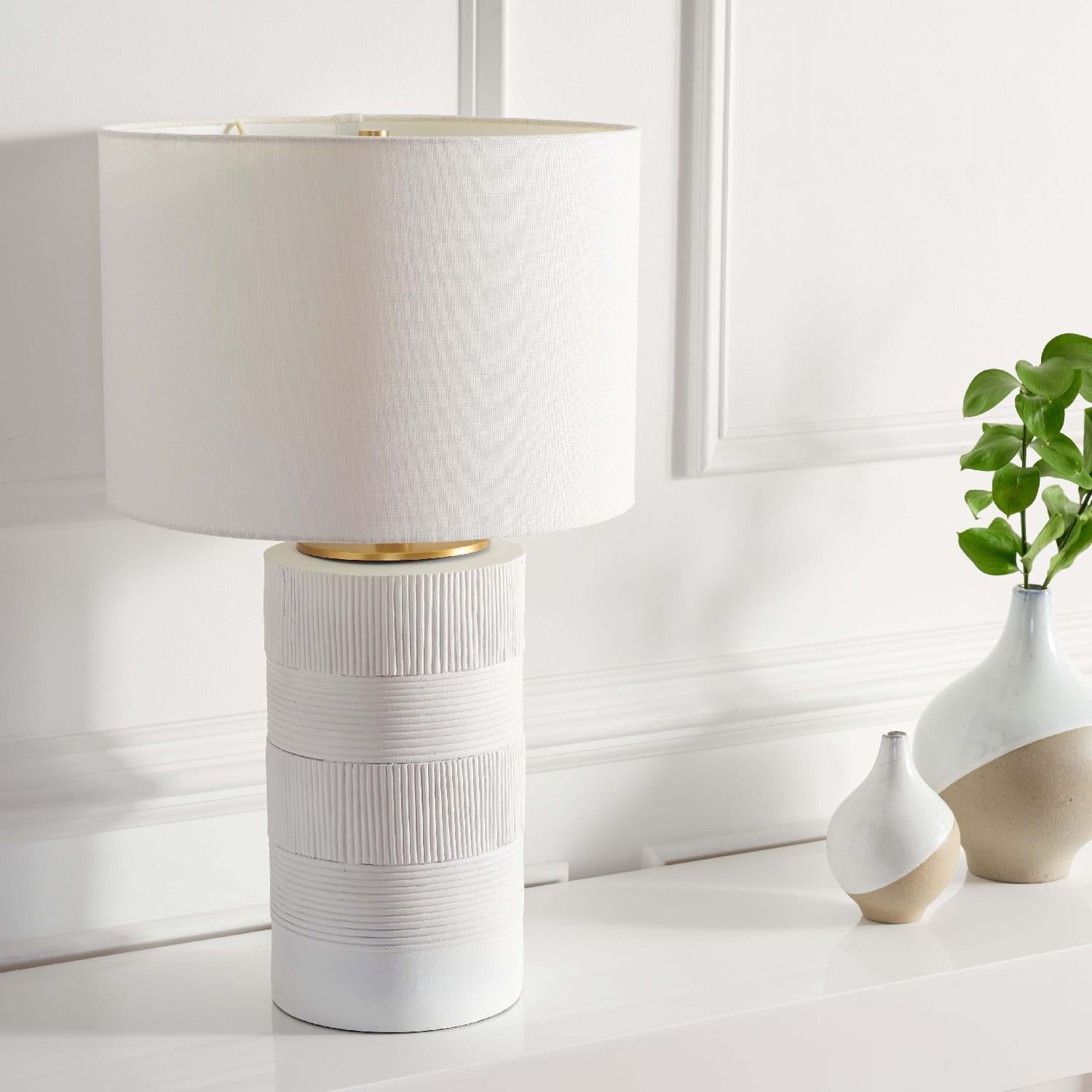 Give a chic and classy update to your home with the Weller table lamp. The sleek lamp captures the eye with its artisanal texture. Creating the perfect contrast, the drum shade and resin body come together to feature as a modern and striking accent for your home. The table lamp delivers softly diffused light to add warmth and character to your bedside, desk, console, or end table.