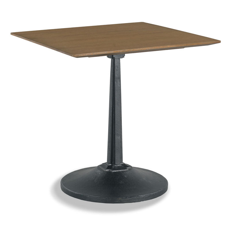 A square top in our #09 Vintage finish rests over a cast metal tapering central column and base in a gunmetal finish.