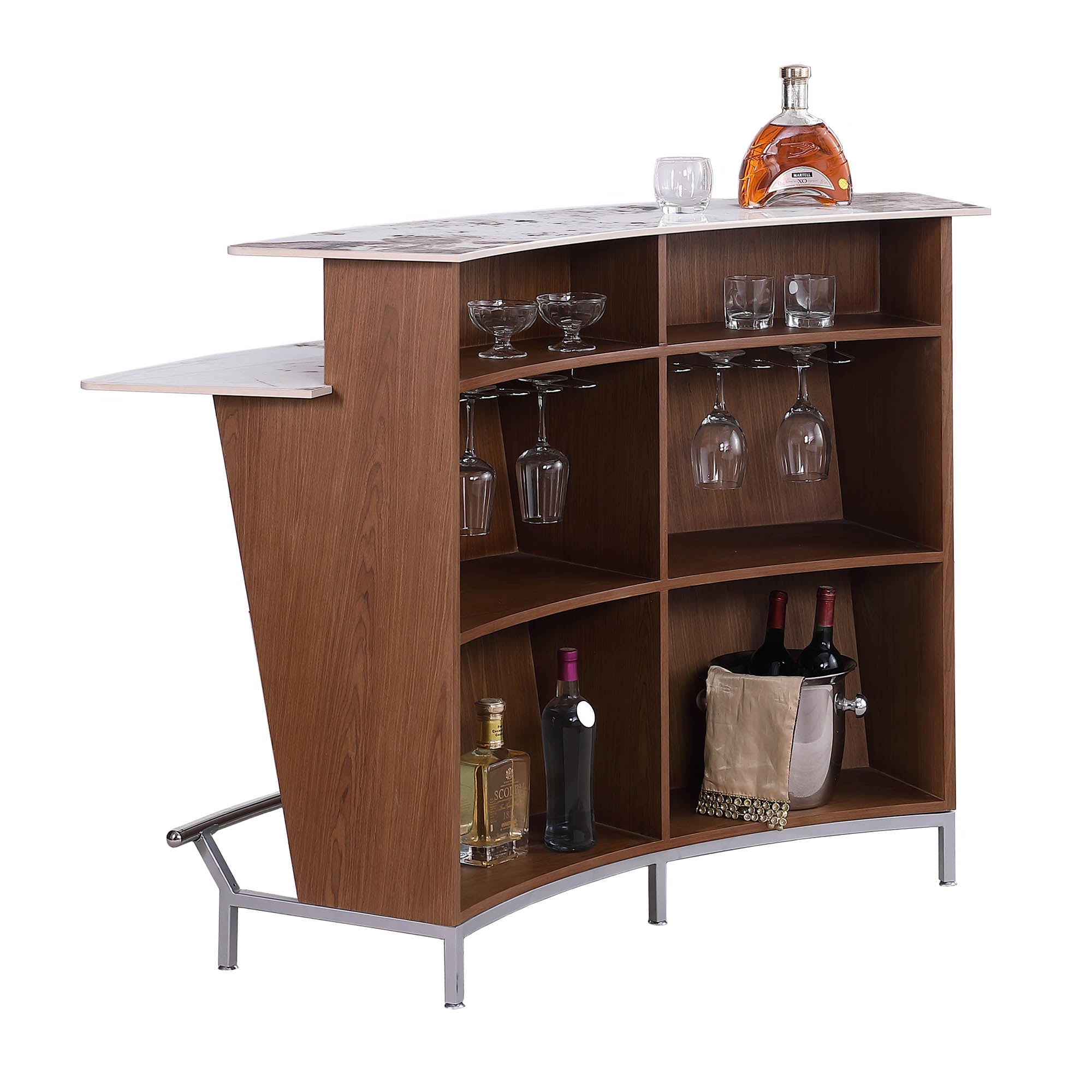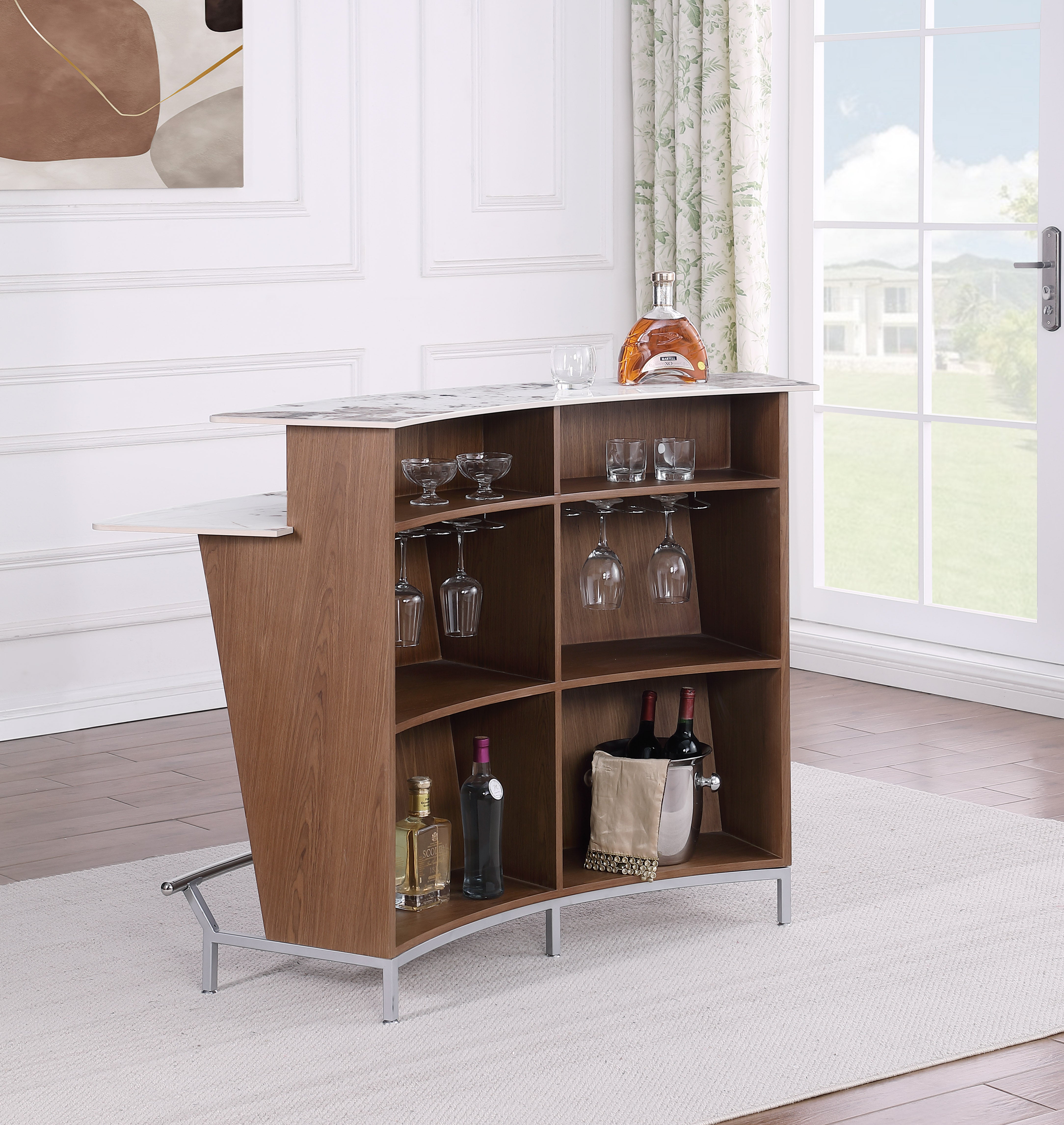 Wooden Bar w/ Ceramic Top & Stainless Steel Footrail | Modern Motion - RUBY-BAR-WAL