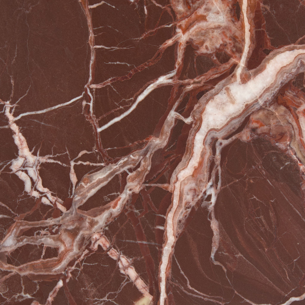 Shape and material share the spotlight in this tripod-style coffee table of solid marble. With turned, pillar legs and a rich merlot finish, with dramatic natural veining. Option to pair with smaller matching table for a nested look.